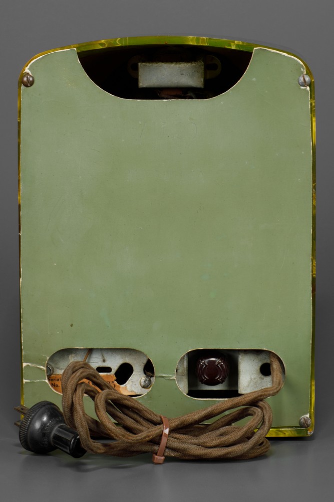 Beautifully Highly Swirled Emerson AU-190 radio from 1937 in a Green or Brazilian Onyx as Emerson referred to it. This swirled example is absolutely stunning and has areas where you can see the grill cloth and chassis due to its transparency. The green Catalin cabinet is heavily marbleized with tones of green, yellow, clear and brown that add depth to an already beautiful radio. The radio is in original, untouched condition, and is just a great example of this seldom seen color Emerson 'Tombstone' model.